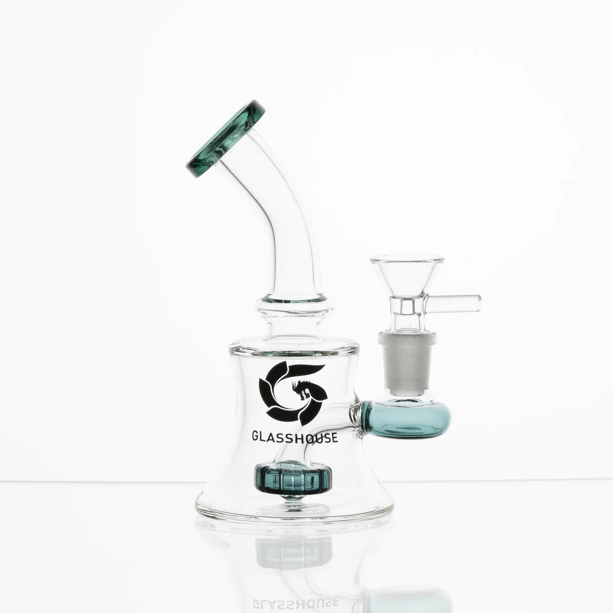 La pipa de agua de vidrio de tubo recto de Glass House cuenta con un cuerpo recto con difusor de tubo descendente ranurado y un embudo para hierbas con asa.