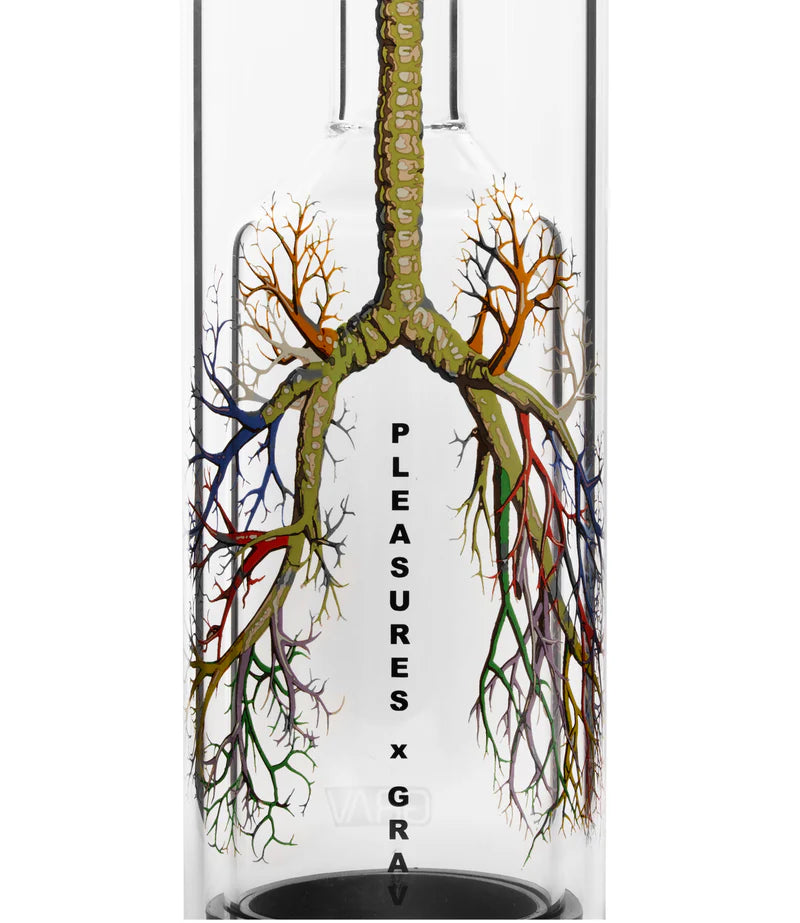 El Breathe Again Gravitron es una pieza imprescindible para los coleccionistas de GRAV y los fanáticos de la marca Pleasures. Este bong de gravedad brinda una calada como nunca antes. El bong presenta una cautivadora ilustración anatómica a todo color de los pulmones y el logotipo de Pleasures, lo que lo hace visualmente impresionante. Esta pieza captura la esencia de la inhalación y exhalación profunda que todos apreciamos.